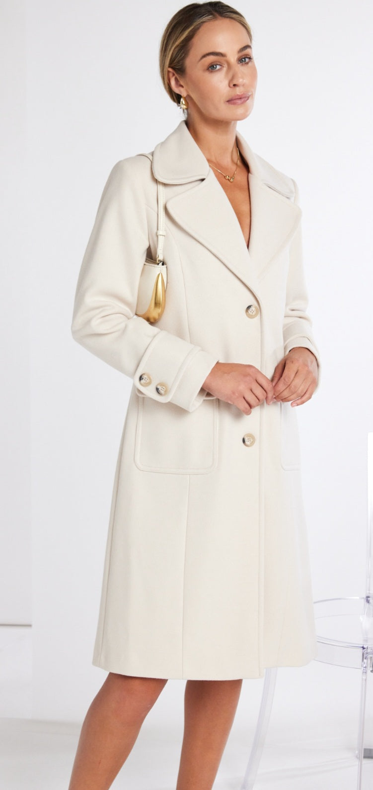 Designed with a flattering longline silhouette, structured shoulders, and a clean front closure, this coat