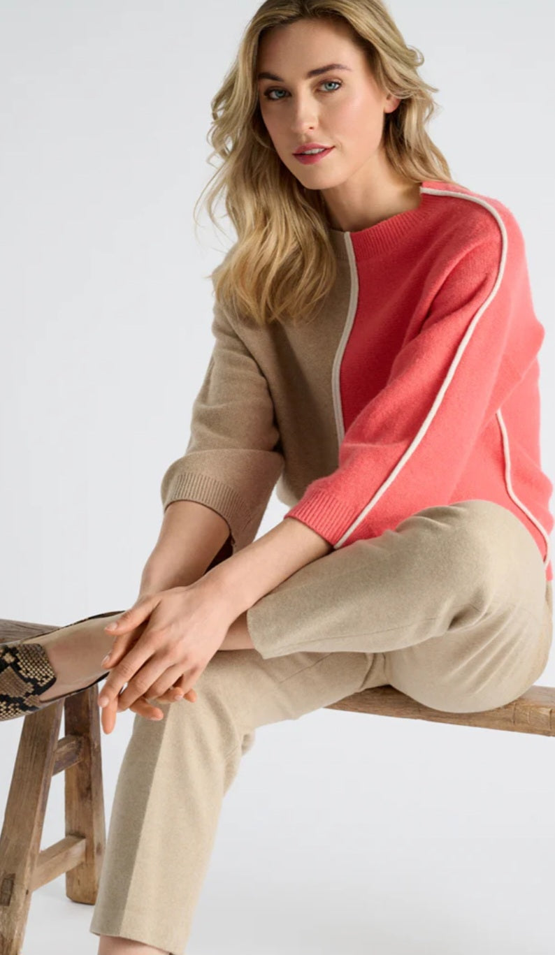 Crafted from a high-quality, breathable knit, it offers a flattering fit and just the right amount of warmth for transitional seasons. Whether you're dressing it up with tailored trousers or keeping it casual with jeans, this versatile two-tone sweater brings style and comfort together.